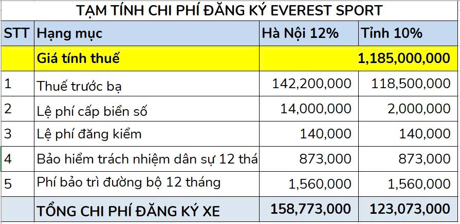 Giá lăn bánh Ford Everest